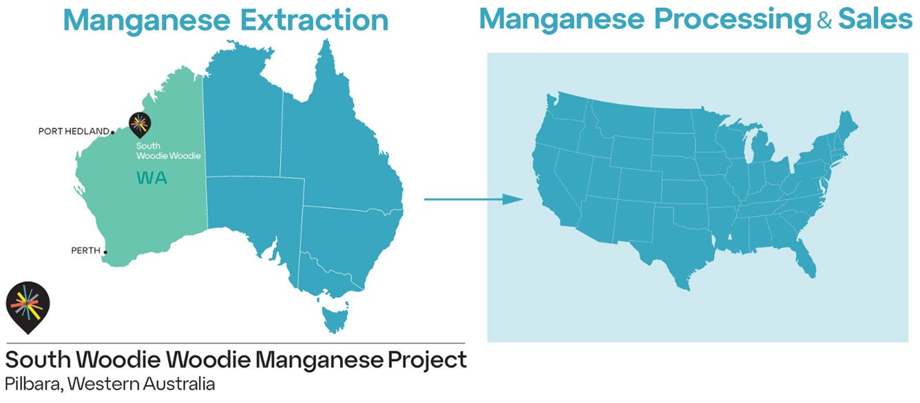 The South Woodie Woodie Manganese Project is a fully integrated HPMSM / EMM project designed to meet multiple and evolving specifications of both Electric Vehicle and Energy Storage System markets. To that end AEF continues to advance a staged development plan, targeting the extraction, processing and sales of HPMSM and EMM to North American and allied markets.